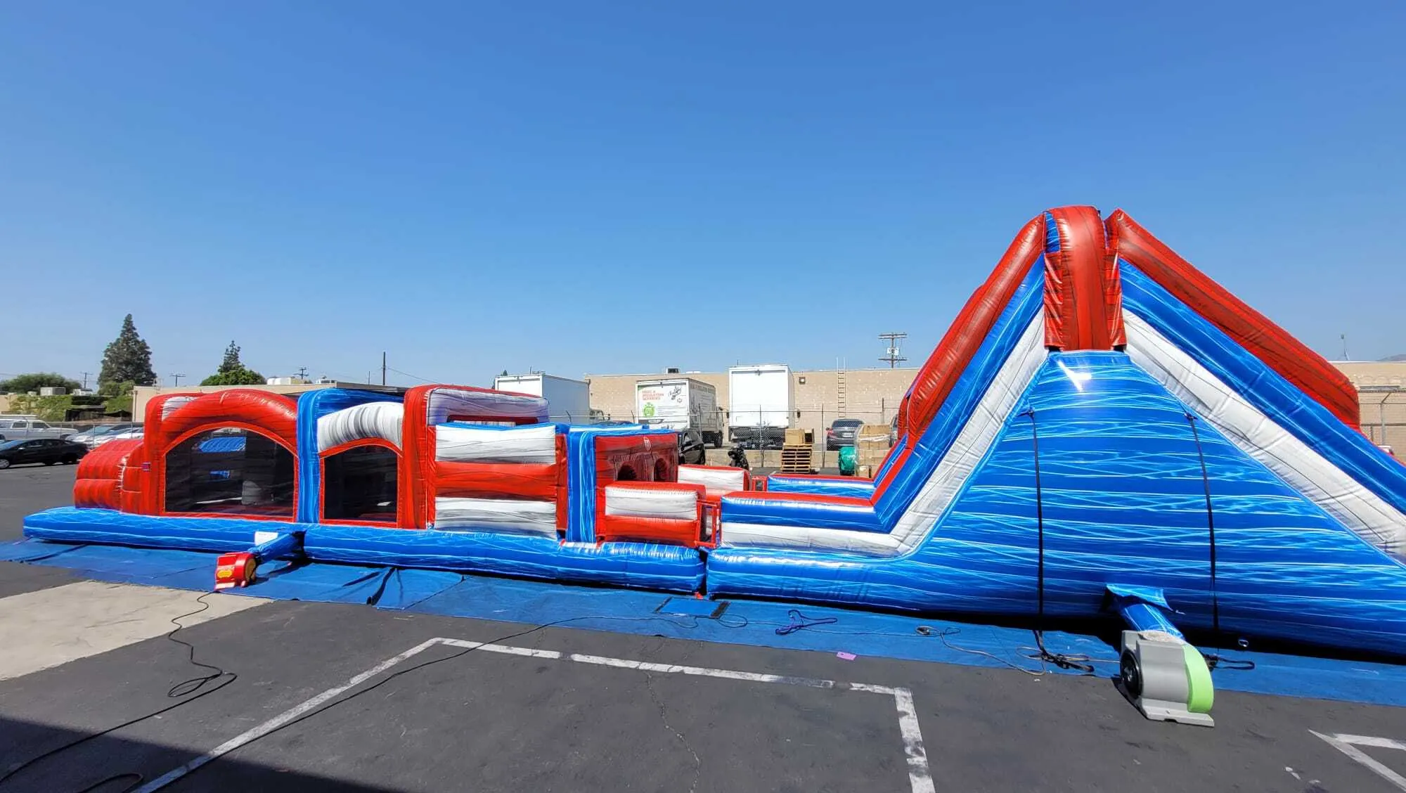Unit utilizes two blowers. Please ensure to have two outlets that are on separate breakers within 100ft of preferred location. We provide 100'extension cords.