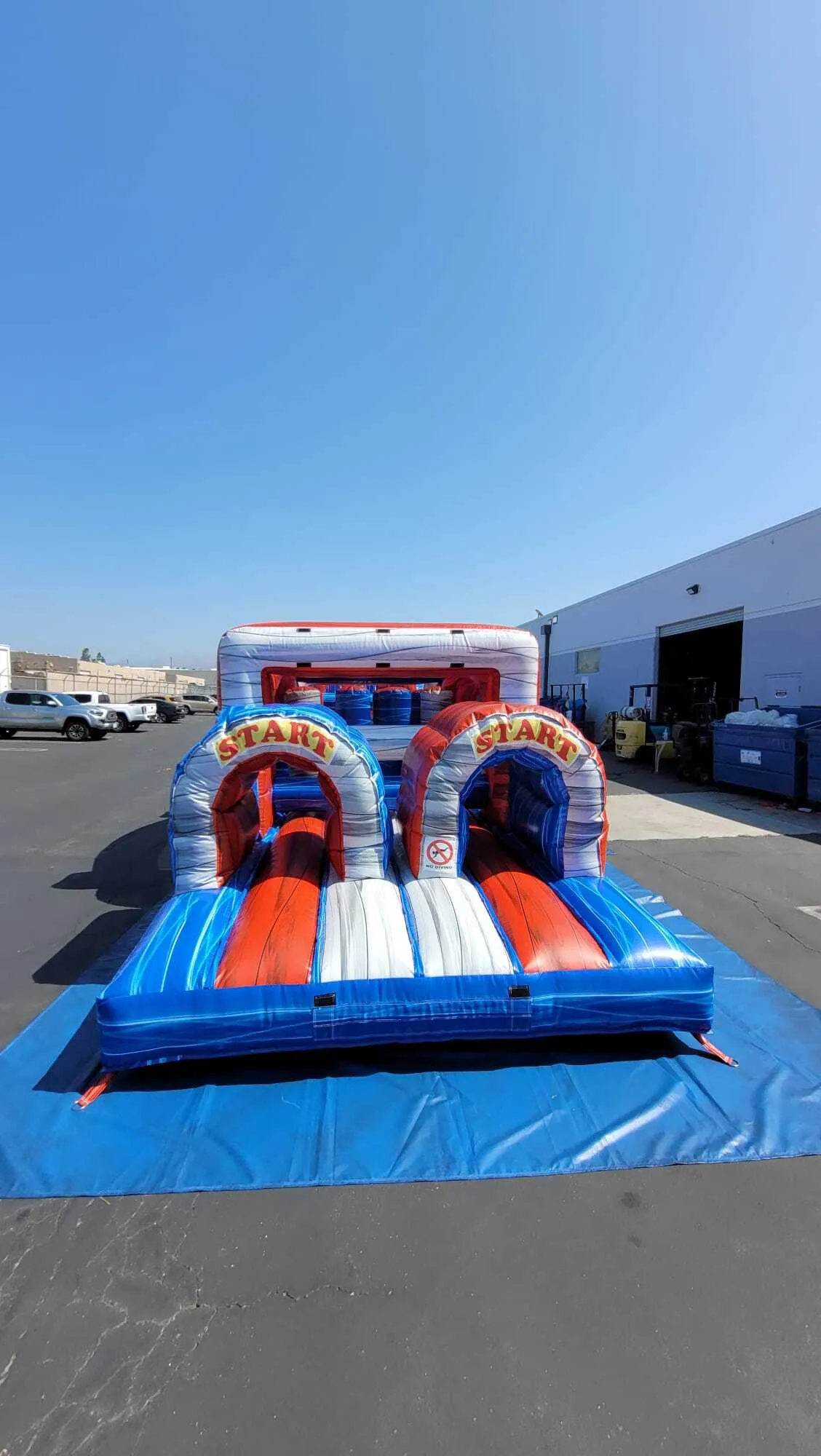 Unit utilizes two blowers. Please ensure to have two outlets that are on separate breakers within 100' of preferred location. We provide 100'extension cords.