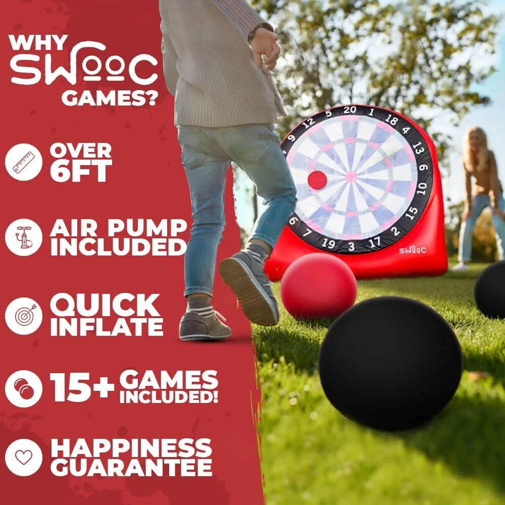Giant Kick Darts (Over 6ft Tall) with 15+ Games Included - Jumbo Soccer Darts with Air Pump
